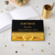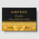 Elegant, classic, glamorous and feminine. A faux gold colored ribbon with a bow with golden faux glitter and sparkle, a bit of bling and luxury. A guestbook for a 100th birthday party. The name is written with golden trendy hand lettered style script. Black background.