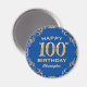 100th Birthday Party Blue and Gold Glitter Frame Magnet