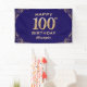 100th Birthday Party Navy Blue and Gold Glitter Banner