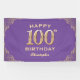 100th Birthday Party Purple and Gold Glitter Frame Banner