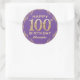 100th Birthday Party Purple and Gold Glitter Frame Classic Round Sticker