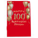 100th Birthday Party Red and Gold Balloons Medium Gift Bag