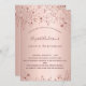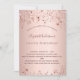 A modern, stylish and glamourous invitation for a woman's 100th birthday party. A faux rose gold metallic looking background with an elegant faux rose gold twinkling stars. The name is written with a modern dark rose gold coloured hand lettered style script. Templates for your party details.