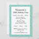 Send personalised teal and white birthday party invitations to celebrate the 100th birthday of a very special centenarian. The 100th birthday party theme on back is a random number pattern with the teal milestone number "100" scattered on a white background. The front has text templates for; Who, What, Where, and RSVP framed with the same number pattern as the back. 100-year-old friends and family are very very special so, personalise it, have fun with it, and make it your own.