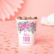 100th birthday pink floral Paper Cups. Personalise name and age.