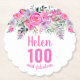 100th birthday pink floral script name Paper Coaster. Personalise name and age.