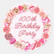 100th Birthday Pink Rose Swirly Heart Envelope Classic Round Sticker