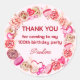Thank your guests in the sweetest way with this Thank You sticker. It looks great on favours and cards. Girly girls of all ages will love this feminine design. Pretty pink watercolor roses and whimsical swirly hearts create the perfect 100th birthday design for a February or Valentine's Day birthday. Candy and macarons add to the sweet design. The softest pink watercolor wash frames the text and graphics perfectly. All of the text is editable, so you can carefully craft your message of thanks. This item is part of the Pink Rose and Swirly Heart collection. You can easily choose your theme and then create a unique invitation suite, welcome signs and additional supplies and decorations.
