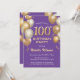 100th Birthday Purple and Gold Glitter Balloons Invitation
