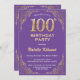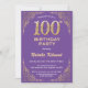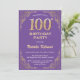 100th Birthday Purple and Gold Glitter Frame Invitation