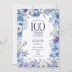 100th Birthday, Purple & Blue Floral, Milestone Invitation