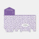 This background is a purple and white random number pattern with milestone number 100 repeated in varied sizes and angles. There is a purple flap on the top and an oval plaque in the centre front for your text. Use the easy templates to add your own words, name initial, or monogram.