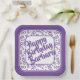 100th Birthday Random Number Pattern Purple/White Paper Plate
