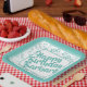This centennial design has a teal and white random number pattern with a teal milestone 100 repeated in varied sizes and angles on a white background. There is a square in the centre for your text and a teal and white frame around the rim. This is a fun idea for your favourite centenarian's 100th birthday party or any event where you celebrate milestone number one hundred.