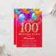 100th Birthday Red and Gold Colourful Balloons Invitation