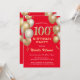 100th Birthday Red and Gold Glitter Balloons Invitation