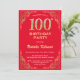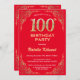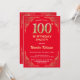 100th Birthday Red and Gold Glitter Frame Invitation