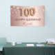 Elegant, classic, glamourous and girly for a 100th birthday party. Rose gold and blush pink, gradient background. Decorated with rose gold faux diamonds. Personalise and add a name. With the text: Happy Birthday. The name is written with a modern dark rose coloured hand lettered style script. Number 100 is written with a balloon style font.
