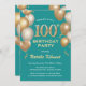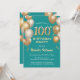 100th Birthday Teal and Gold Glitter Balloons Invitation