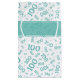 This modern design is a teal and white random number pattern with a teal milestone number 100 repeated in varied sizes and angles printed on a white background. There is a banner with, "Happy Birthday," and a printed white gift tag with a name and message; both have text templates. You can easily personalise the text with your own words, name, initial or monogram.