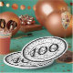 This over-the-hill design is black and white with the large milestone number 100 in the centre with the bold text, “Centenarian,” printed diagonally on top. The background is sprinkled with confetti.