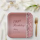 100th Elegant Rose Gold Birthday Paper Plate