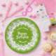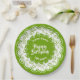100th Green/White Random Number Pattern Paper Plate
