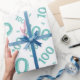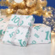 100th Teal/White Random Number Pattern Large Wrapping Paper