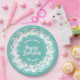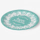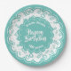 This is a teal and white random number pattern with fancy scallops and custom text.  The teal milestone number 100 is scattered over a white background.  The design is a very cool fun way to celebrate the past 100 years at your over-the-hill, 100th birthday party.