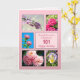 101st birthday card. Send beautiful flowers to a beautiful person. A birthday card with a beautiful sentiment. A collection of framed pictures of flowers on a pink background.