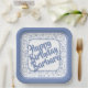 105th Birthday Random Number Pattern Blue/White Paper Plate
