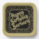 This centennial design has a black and gold random number pattern with a gold milestone number 105 repeated in varied sizes and angles on a black background. There is a square in the centre for your text and a black and white frame around the rim.