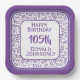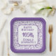 This over-the-hill design has a purple and white random number pattern with the milestone number 105 repeated in varied sizes and angles. There is a white rounded square in the centre for your text and a purple and white frame around the rim.