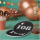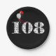 Red, white and black party balloon bouquet on black background for 108th birthday.