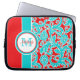 This modern and trendy 10" personalised turquoise blue, red, and white floral damask laptop sleeve has text boxes for you to customise with your own name, initials, business name, monogram, or other text. ****PLEASE contact me if you need a larger size that this 10" one. If you need any help customising, please email niteowlstudio@gmail.com.