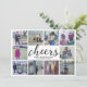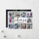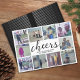 10 Photo Collage Cheers with Black Gray Stripes Holiday Card