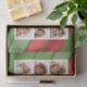 Deep green and red retro stripe pattern -- Use 10 square photos and make a unique and trendy Merry Christmas tissue with a rustic modern script on the front and a festive line art pattern. If you need to move anything around, click on the customise button to make changes.