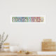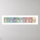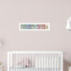 Decorate a corner with a bright colourful banner of 10 cartoon rabbits against a rainbow of watercolor background. A whimsical piece of fun art you can customise for someone as a gift by choosing specific text in the sign of the last bunny. Currently reads "Sam's Room"