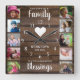 10 Square Photo Collage Family Quote Dark Wood Square Wall Clock