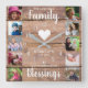 10 Square Photo Collage Family Quote Rustic Wood Wall Clock