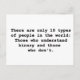 There are only 10 types of people in the world: Those who understand binary and those who don't.