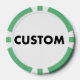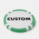 Make, design, create your own custom GREEN Poker Chips, casino tokens - set of 10 chips, available in 9 colours. Personalised poker, casino chips for wedding favours, birthday or bachelorette party, corporate charity events and more.