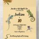 This simple colourful birthday card for a 10 year old's party at the reptile park and be customised to a range of ages and child's names. The all in one design includes a removable RSVP section. This invitation can be personalised with headings, names, age, rsvp instructions and includes space for someone to write a response and return it to your child at school. The theme has amusing and fun pictures of a range of colourful reptiles to encourage any child to have a great day. This invitation is part of a set of stationary and other party supplies with the same theme.