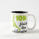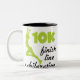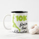 10K Finish Line Exhilaration design T-shirts, hoodies, mugs, bags, key chains, magnets, and more with green and black text and a silhouette female runner crossing the finish line. 10K runner apparel and gifts for anyone running a 10K.