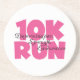 Bright pink text that reads 10K RUN and black text that reads Determination Strength Endurance on running T-shirts, hoodies, buttons, bags, mugs, stickers, and other products for anyone who is training for or already has run a 10K!