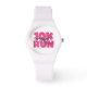 Bright pink text that reads 10K RUN and black text that reads Determination Strength Endurance on running T-shirts, hoodies, buttons, bags, mugs, stickers, and other products for anyone who is training for or already has run a 10K!
