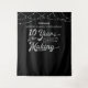 Welcome the party's honorees and guests and utilise as a fun photo backdrop for pictures with this 10th wedding anniversary banner sign designed in black and silver with a string lights border and featuring a retro typography title 10 YEARS IN THE MAKING which incorporates their wedding year as part of the design and personalised with their names. NOTE: You can change the black background colour to coordinate with your party theme colours by clicking on CUSTOMIZE FURTHER. Contact the designer via ZAZZLE CHAT or makeitaboutyoustore@gmail.com if you'd like this design modified, on another product or coordinating party supplies and gifts.