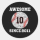 10th Birthday Baseball Lover Gift 10 Years Old Vin Classic Round Sticker