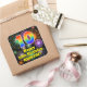 This joyful and exciting birthday square sticker design features a large number “10” with a colourful rainbow spectrum gradient inspired pattern, along with the message “Happy 10th Birthday,”, and a personalised name. The background features a multicolored pattern inspired by the appearance of bursting celebratory fireworks. Fun, personalised stickers like this might be given as a birthday gift, or used while wrapping gifts, or perhaps used as birthday party decorations when celebrating somebody’s tenth birthday. [~Z0000579]