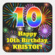 10th Birthday: Fun Fireworks Look, Rainbow # 10 Square Sticker